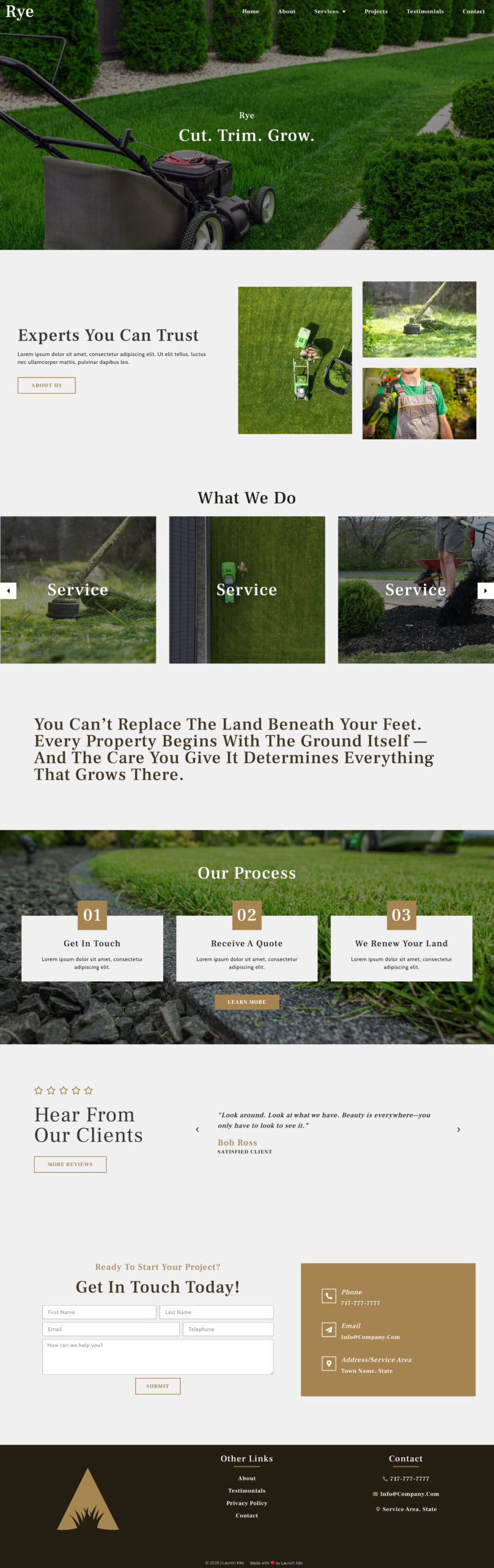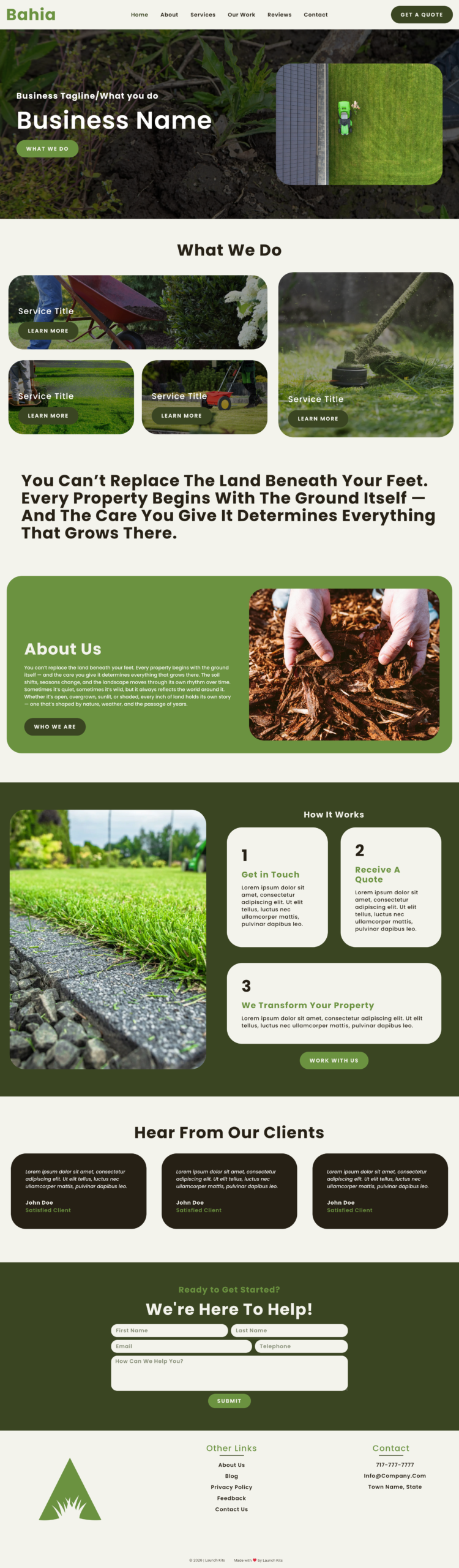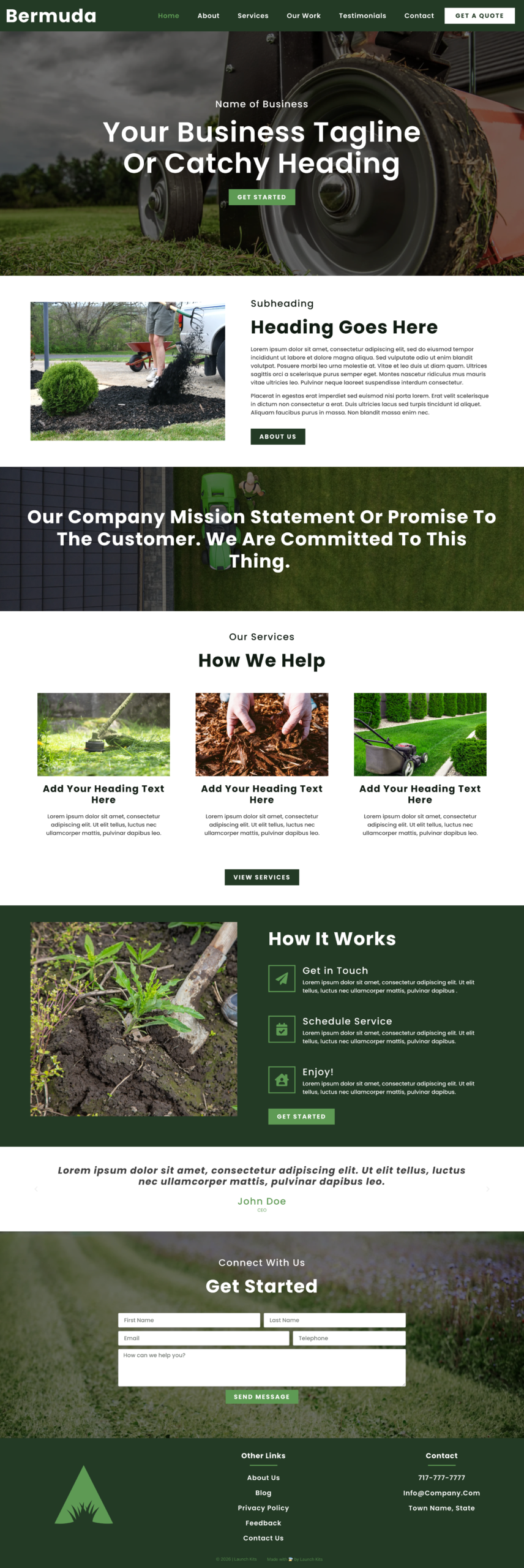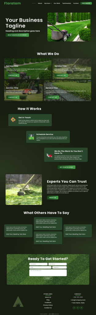 Bermuda is a clean layout that puts the emphasis on your message and photos of your work. It’s perfect for a lawn care business that prioritizes clear messaging and clear calls-to-action.