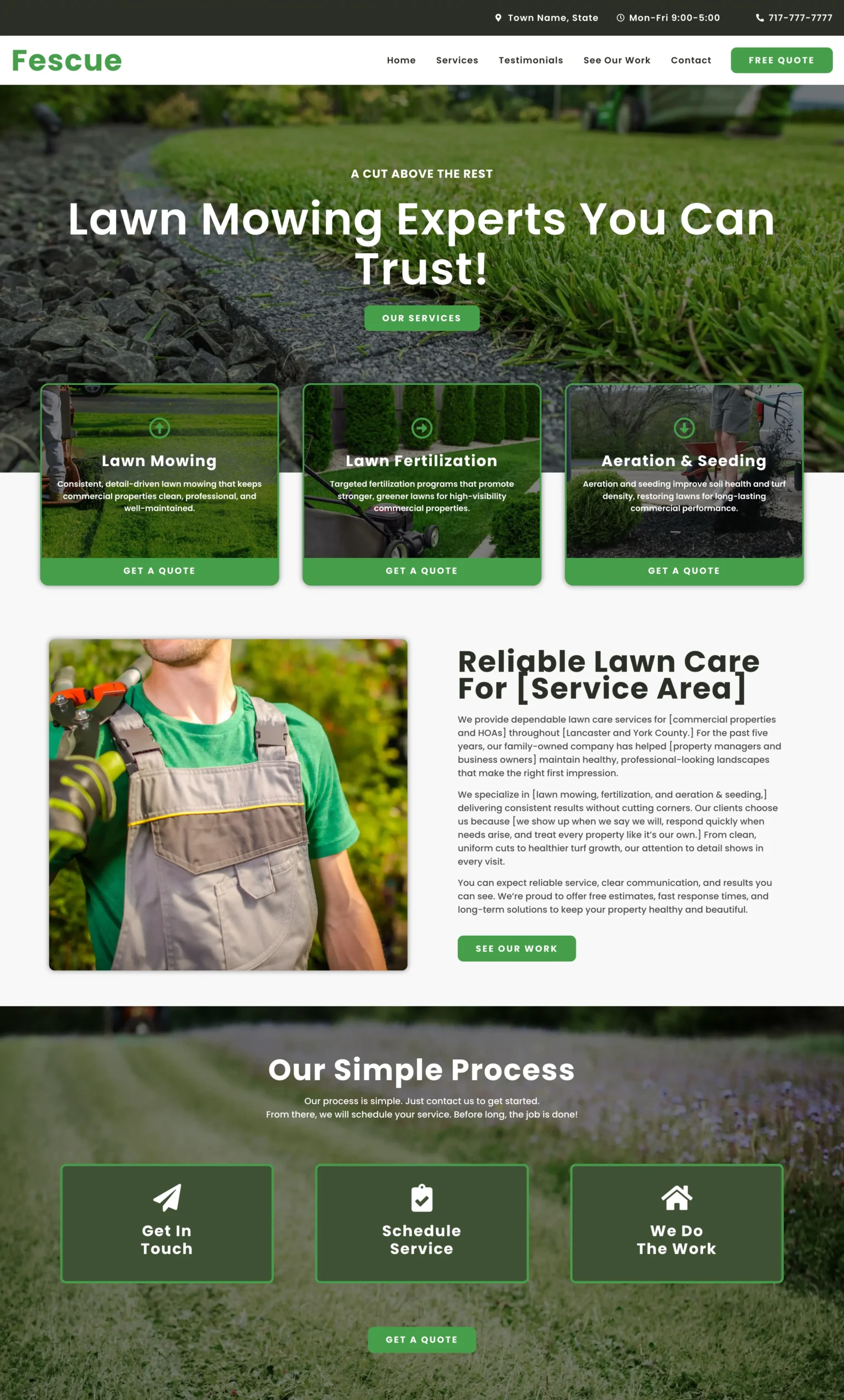 Fescue is a 5-page website we designed with a layout that draws website visitors through a carefully designed page flow. This layout is a great option for businesses that have multi-step process.